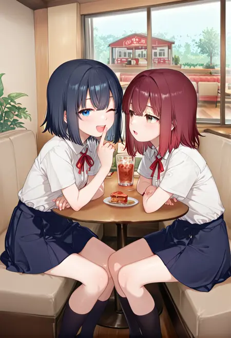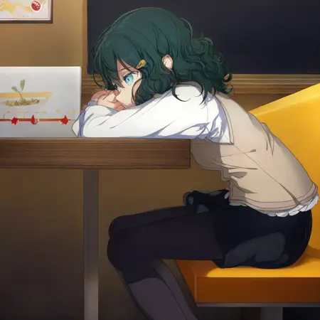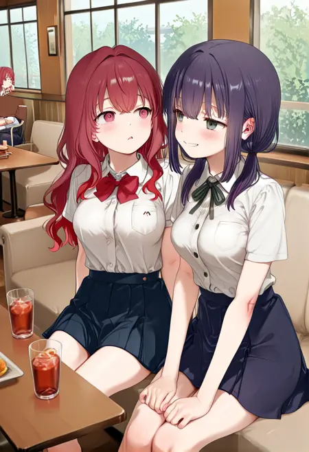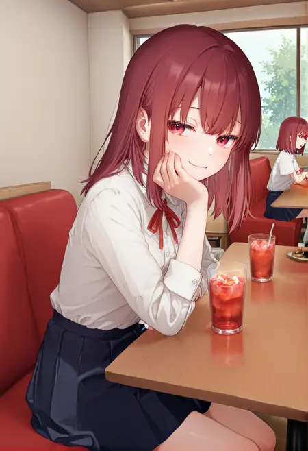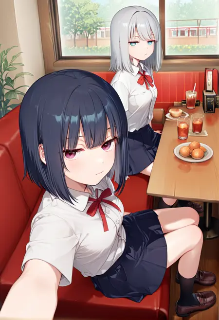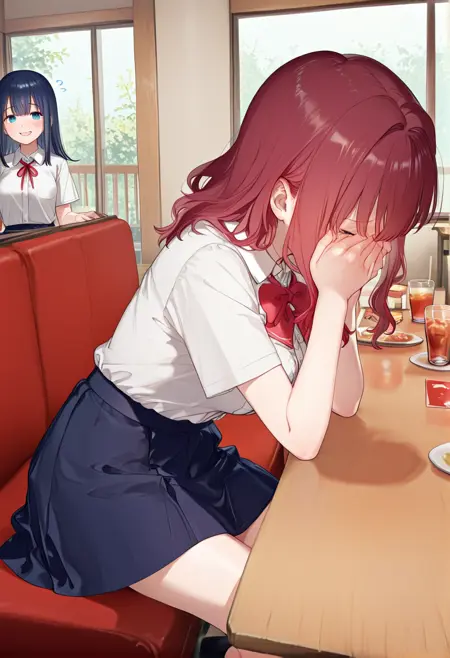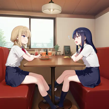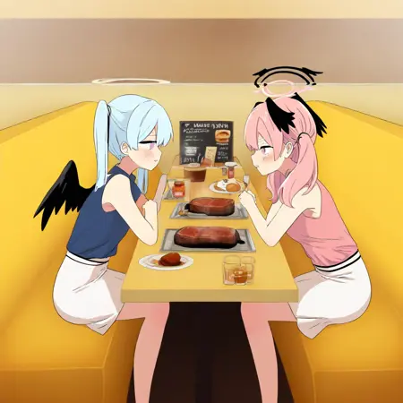 LoRA 없이 이 레스토랑은 인물들이 전경에 위치한 채 단조로운 구도가 됩니다. 이건 이미 질려요.