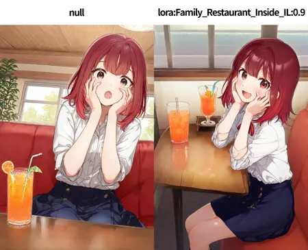 이 LoRA를 사용하면 측면에서 본 가족 레스토랑을 만들 수 있습니다.