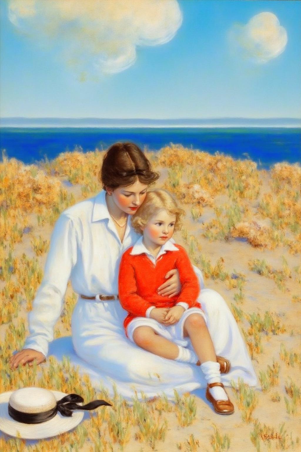 她创作出充满温暖、纯真与静谧情感的场景,常将儿童日常生活的瞬间理想化——从床上阅读到浴中嬉戏。