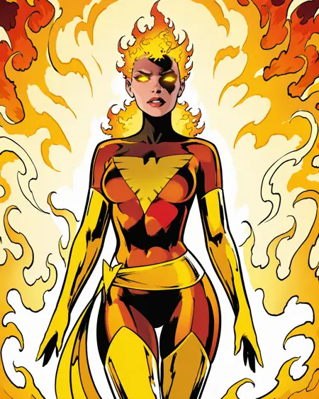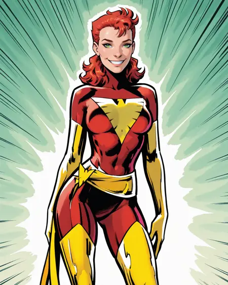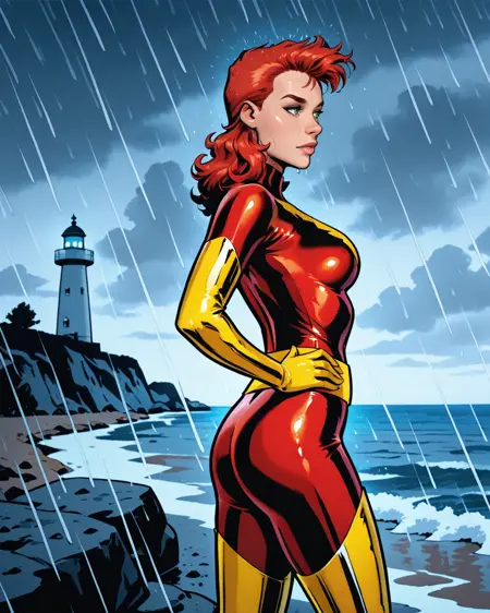 Excaliburのフェニックス衣装を纏ったレイチェル・サマーズ。これは私の最も好きなレイチェルの姿だと思うので、LoRAを公開したいと思いますが、彼女のハウンド姿のLoRAもおそらく作るでしょう。