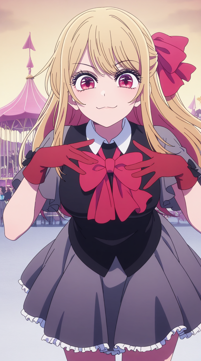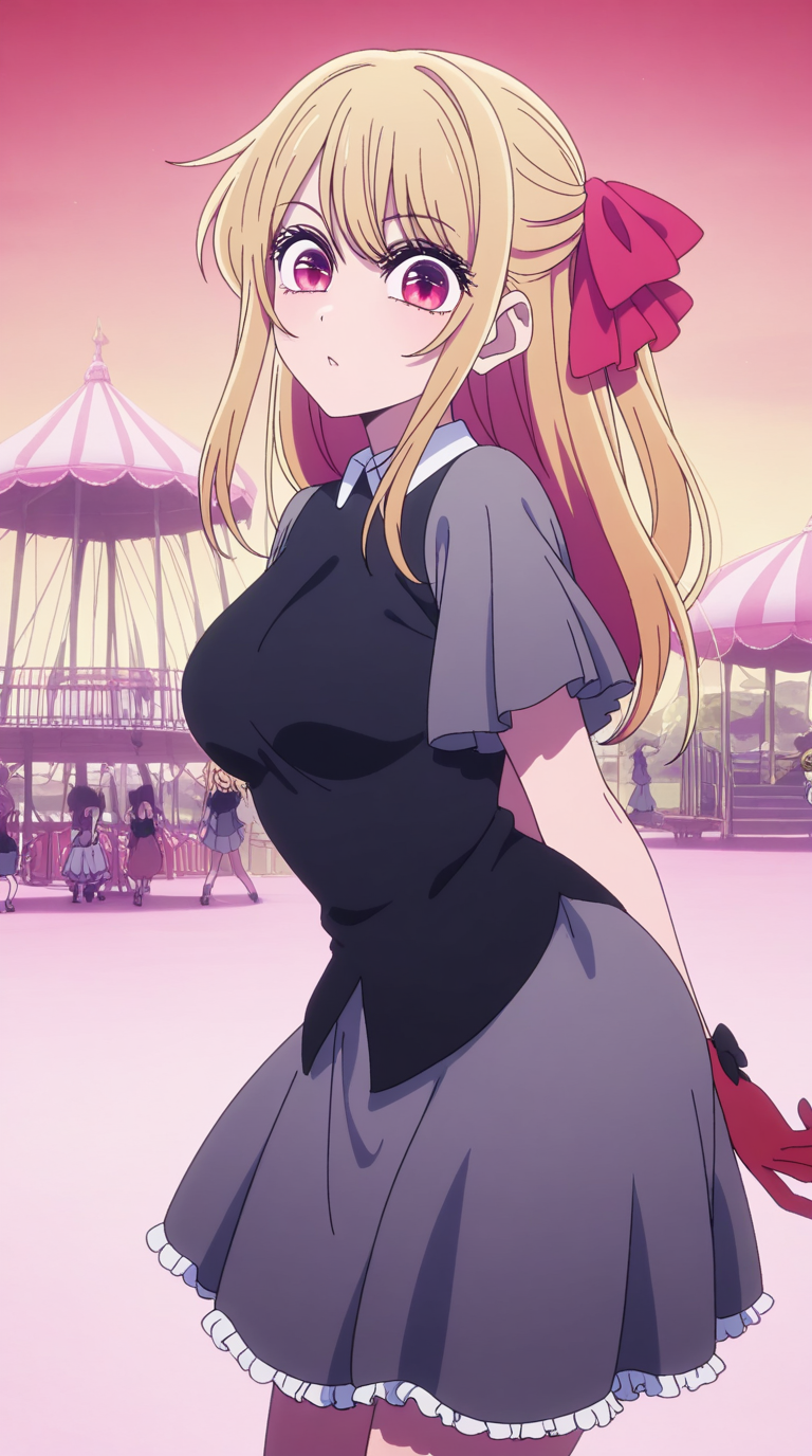 ruby hoshino, hoshino ruby, long hair, bangs, blonde hair, pink eyes, sidelocks, symbol-shaped pupils, multicolored hair, two-tone hair, twintails, low twintails, mature female, medium breasts, anime screencap