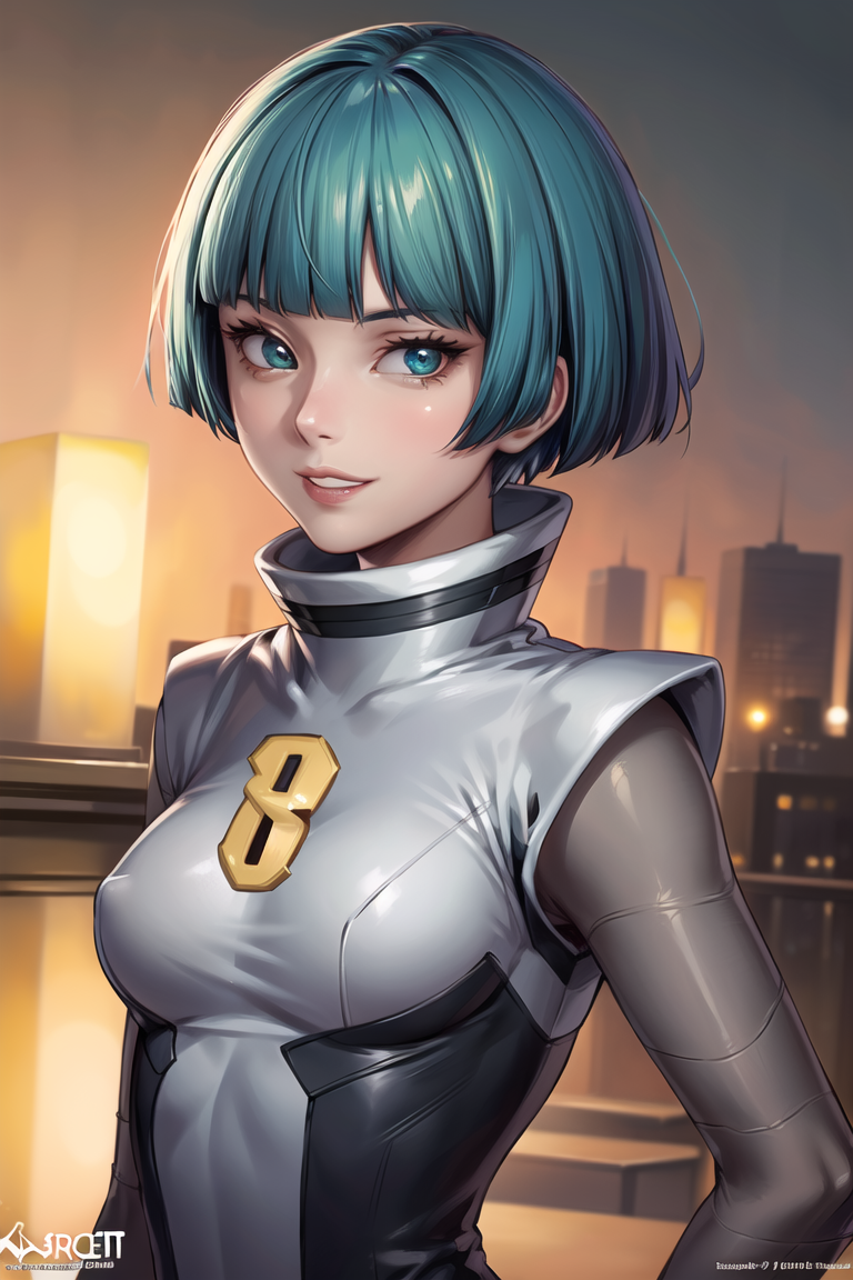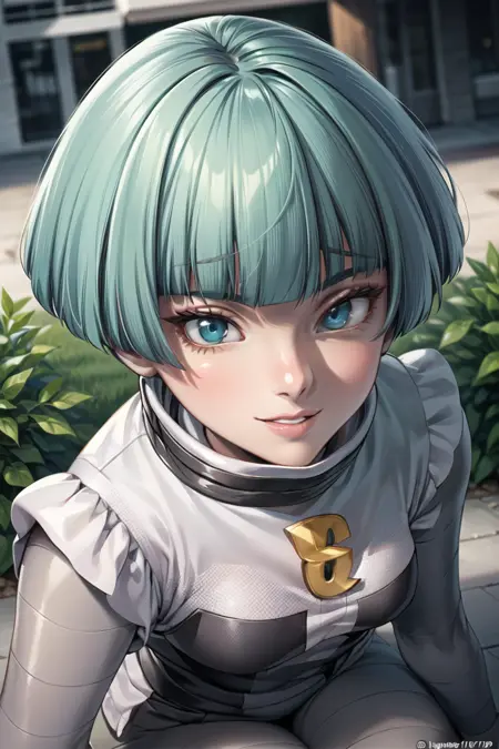 (female grunt), green hair, short hair, blunt bangs, green eyes