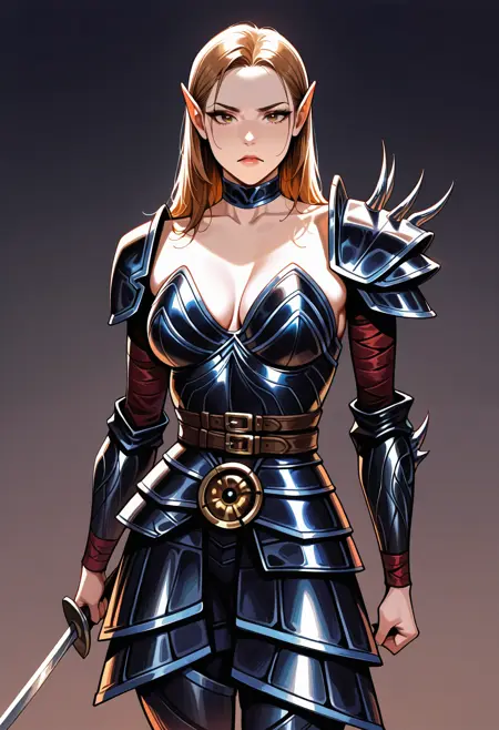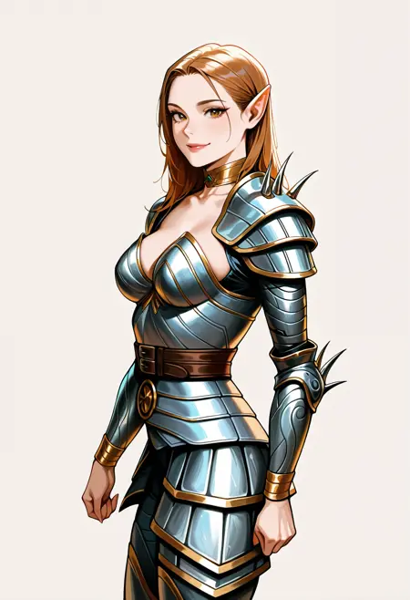 このキャラクターの公式アートワークはそれほど多くなく、ゲーム内のアセットも非常に角ばっているため、衣装を変更すると単なる汎用的なエルフの女性に見えてしまいます。また、これは彼女の鎧用の衣服LoRAとしても機能します。