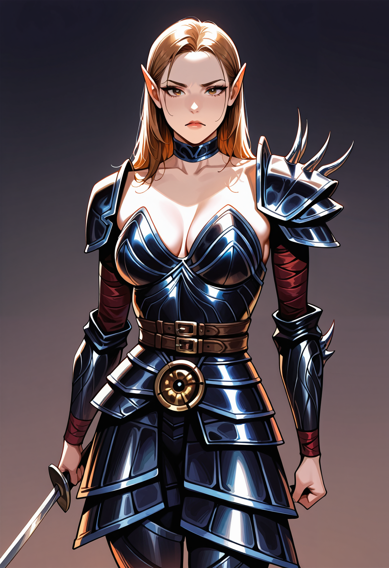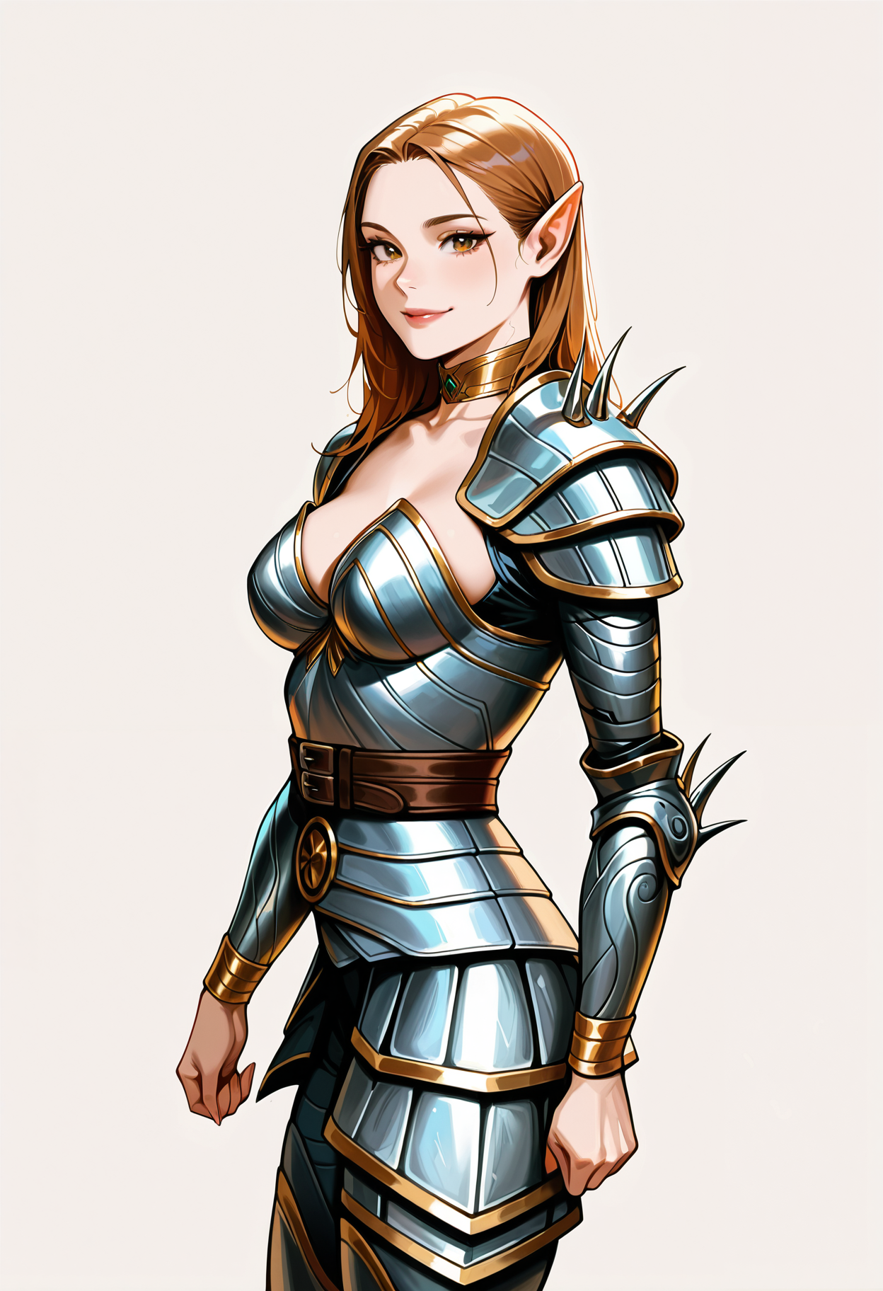 이 캐릭터에 대한 공식 아트워크는 별로 없으며, 게임 내 자산도 다소 단조롭기 때문에 복장을 바꾸면 그냥 일반적인 엘프 여성처럼 보입니다. 또한 이는 그녀의 갑옷에 대한 의상 LoRA 역할도 합니다.