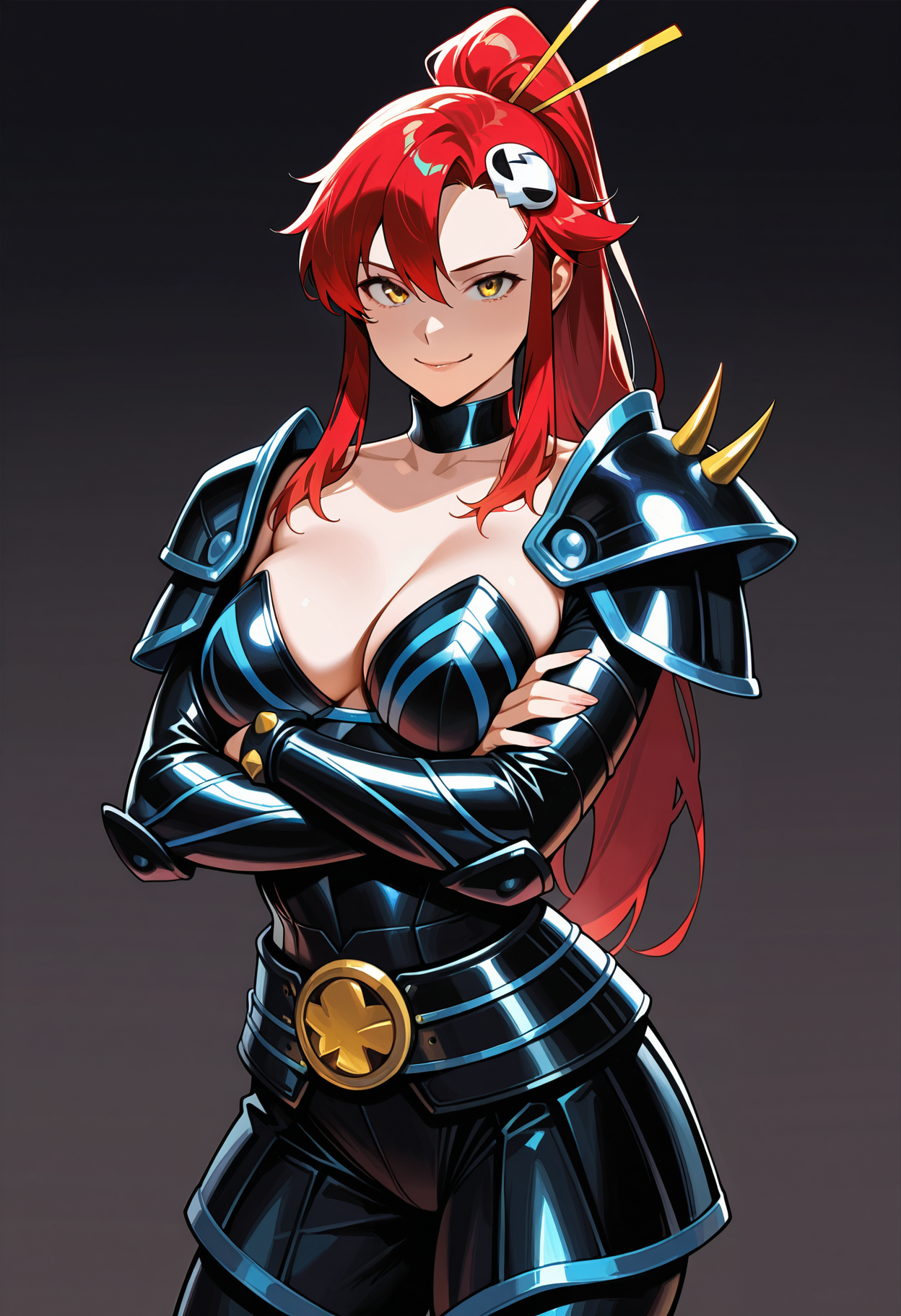 onioyu-plate, 갈색 갑옷, 가슴 부분 절개, 은색 가슴갑, 허벅지 긴 양말, 허벅지 부츠, 스트랩, 장갑, 손가락 없는 장갑, 어깨보호대,