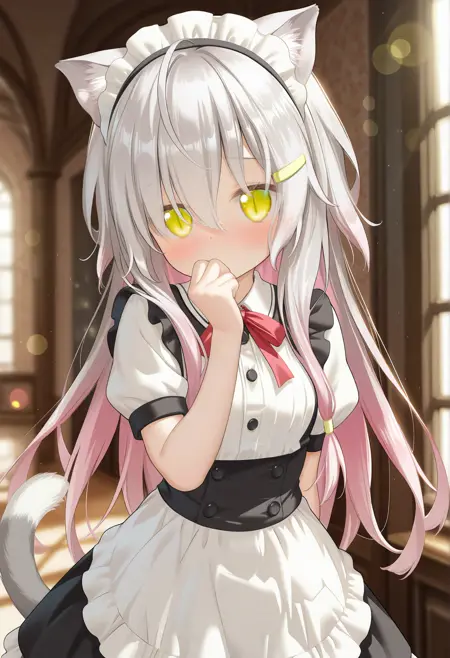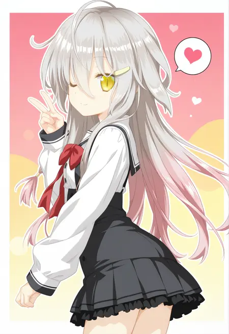 kuro,yellow hairclip,grey hair,pink hair,gradient hair,slit pupils,