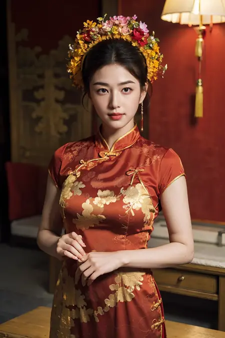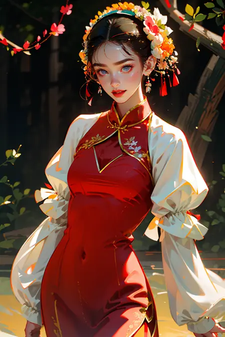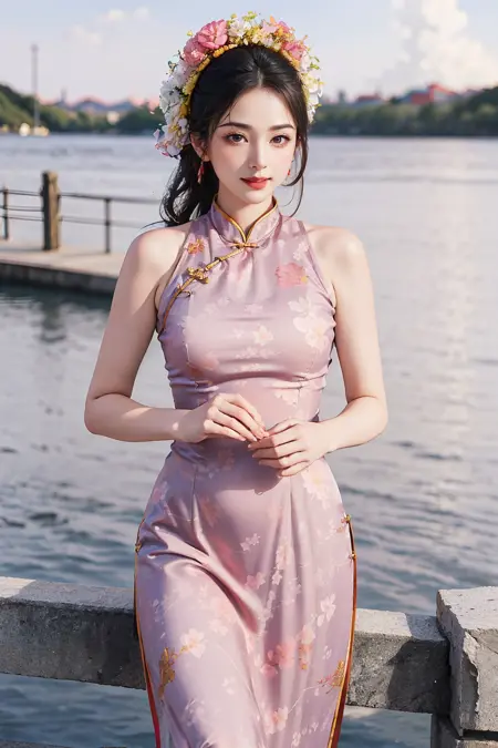 例:1 girl, smile, xunpu, chinese clothes, yellow dress, flower print, hair flower, lake, floral , ((floral background))lora:Xunpu\_V6:0.8