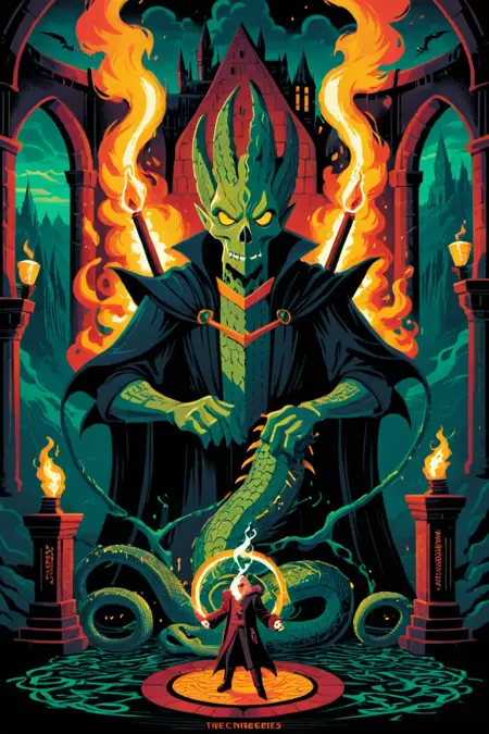 concept poster art {prompt}. digital artwork by tom whalen, bold lines, vibrant, saturated colors, dynamic fusion of retro and contemporary elements