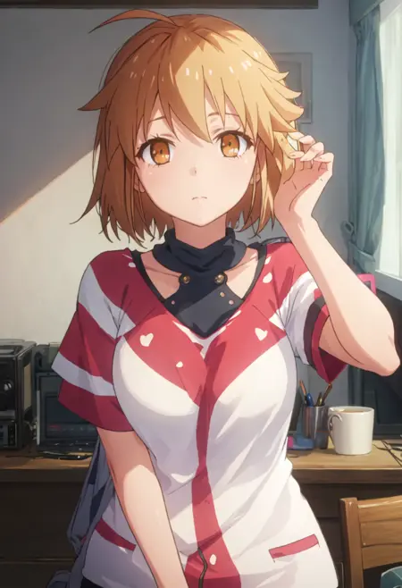 - 정제된 캐릭터 태그는 short_hair, brown_hair, brown_eyes, ahoge입니다. 캐릭터의 핵심 특징(예: 머리색)이 안정적이지 않을 때, 이 태그들을 프롬프트에 추가할 수 있습니다.