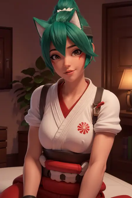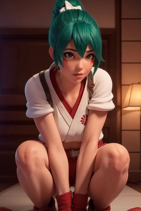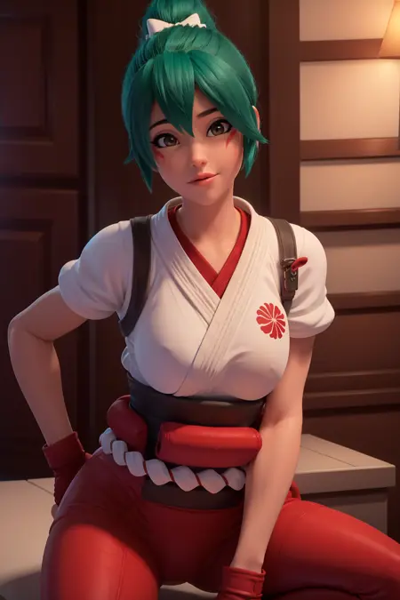 The bad part: I gave it a few tries, seems like her upper dougi is unchangeable like other clothes can't override it. No lower part in the training data, So part of the lower leggings and sneakers won't be what is like in the game or CG and I have no idea how to only get the shoes in there.