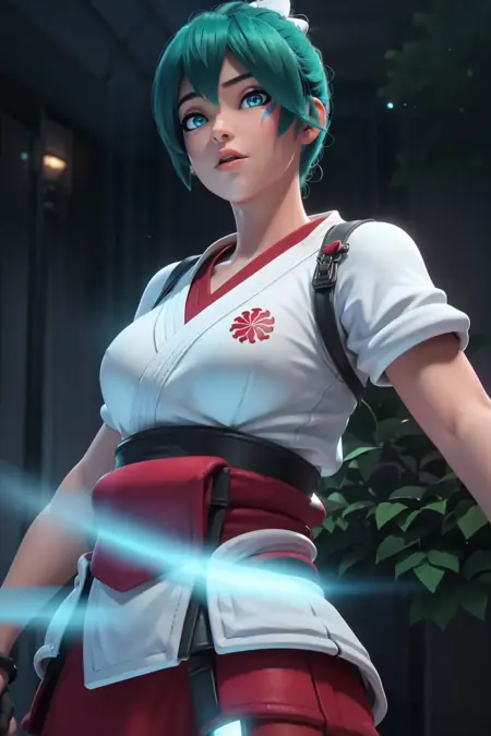 The bad part: I gave it a few tries, seems like her upper dougi is unchangeable like other clothes can't override it. No lower part in the training data, So part of the lower leggings and sneakers won't be what is like in the game or CG and I have no idea how to only get the shoes in there.