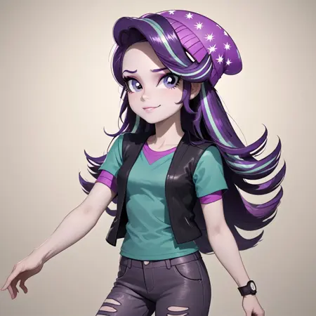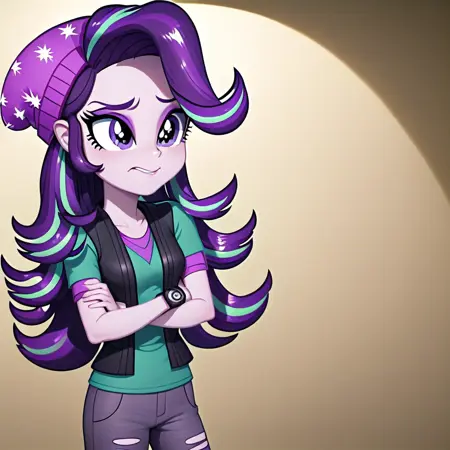 나는 Pony Diffusion에 그녀의 인간 버전이 없는 것처럼 보여 매우 우스꽝스럽다고 느꼈다. 그래서 여기 있다: 마이 리틀 포니 - 이퀴스트리아 걸스의 스타라이트 글리머 인간 버전.