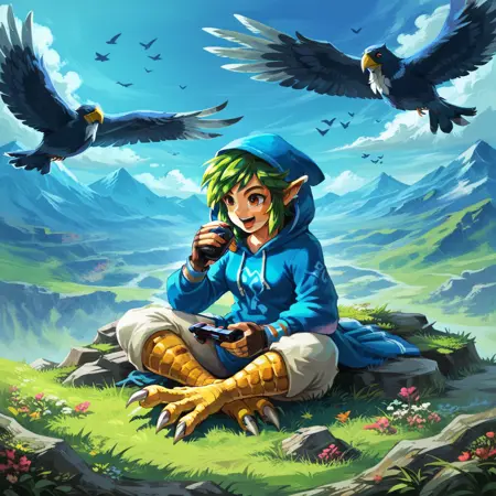最近のゼルダの伝説シリーズ(『ワイドの風』、『王国の涙』)や、より古い作品(『世界のつながり』や『空の神々』)のイラストレーター、和田拓実のスタイルのLoRA(ただし、わずかにスタイルが異なる)。
