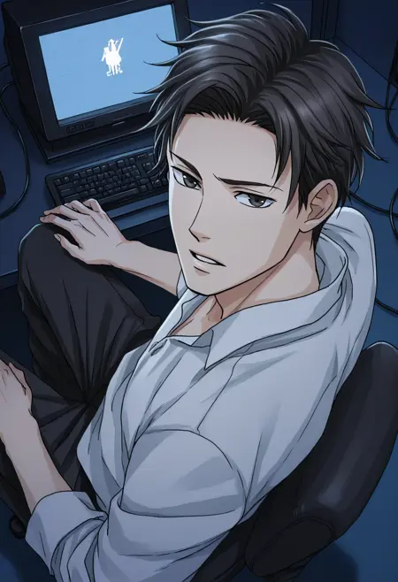 1boy,kd41ch1,black_kd41ch1_hair,grey_kd41ch1_eyes,1boy,male focus,