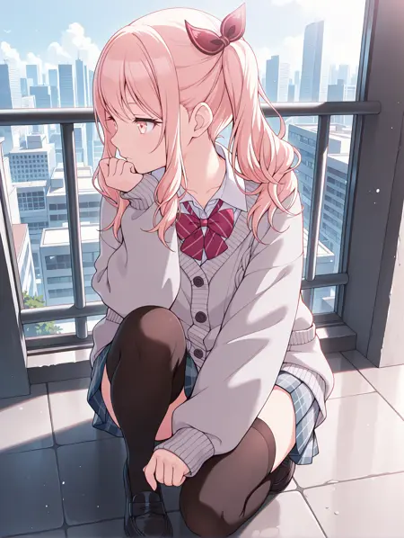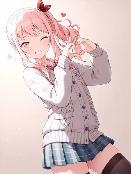トリガーワード ・a_mizuki,pink hair,side ponytail,hair bow,