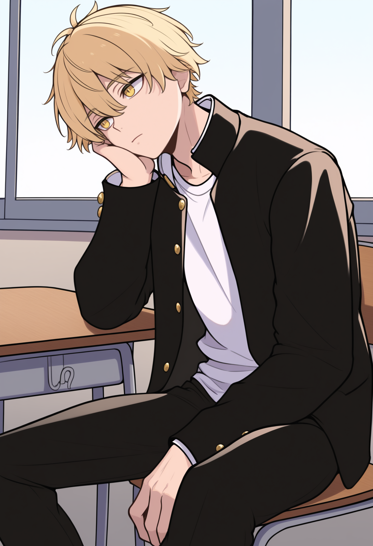 d3nji, 尖牙, 短发, 金发, 黄眼睛