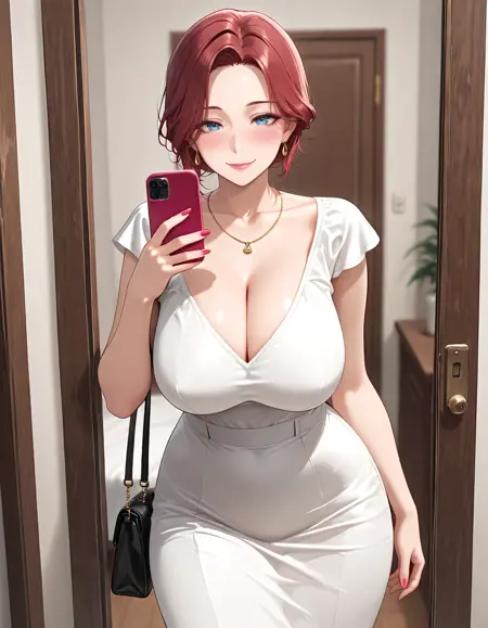 Fiona, milf, mature, blue eyes, red hair, short hair, large breasts, big ass, wide hips