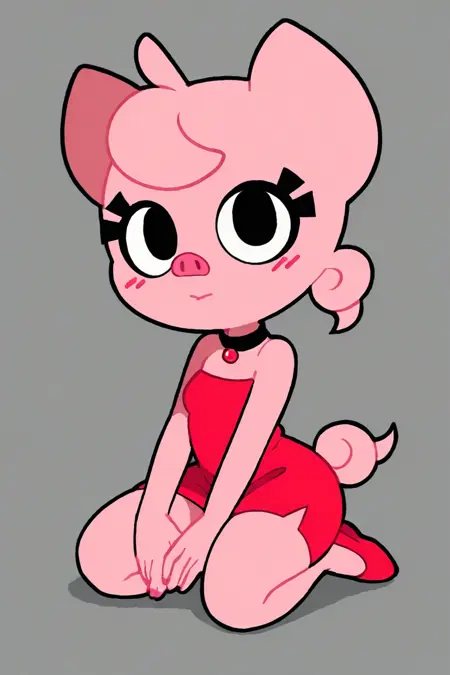 gtmina, 猪女孩, 1girl, 粉色皮肤, 红色连衣裙,
