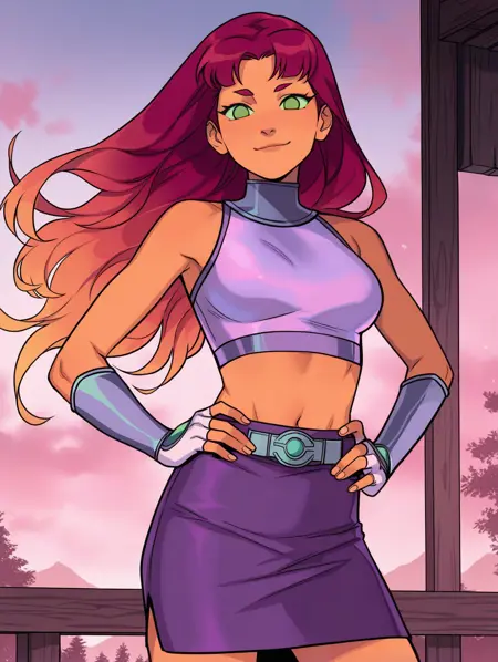 As asked today i m sharing Starfire from Picolo's Teen Titans. I propose two versions, one smooth which gets the character style, and the "comics" version which is the smooth version merged with my Raven lora to make it looks more like picolo style (because i had trouble getting it with just the base resources).