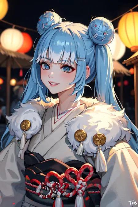 "KoboKimono, 双发髻, 双马尾, 白色和服, 腰带, 毛皮装饰"