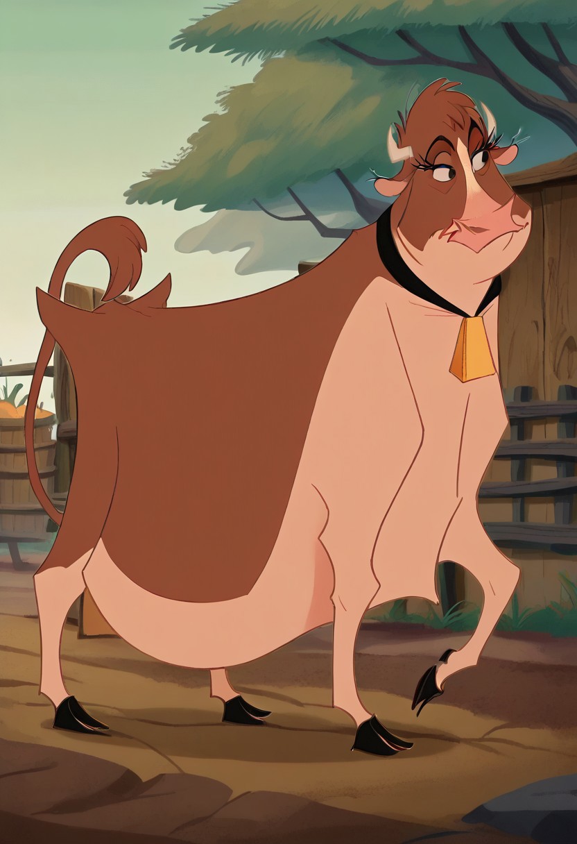 このLoRAは、Home on the Range(ディズニー)をモチーフにしたカートゥーンの牛キャラクター「マギー」の画像を生成するために学習されています。マギーは、生意気で自信に満ちた農場の牛で、皮肉っぽい態度と大胆な性格を持っています。このモデルは、誇張されたプロポーション、豊かな表情、楽しくカートゥーン的な美的感覚を特徴とする、彼女のクラシックな2Dアニメーションスタイルを再現しています。
