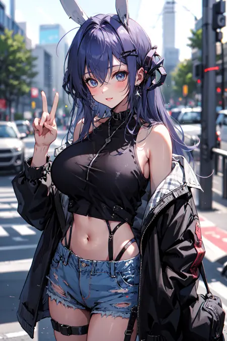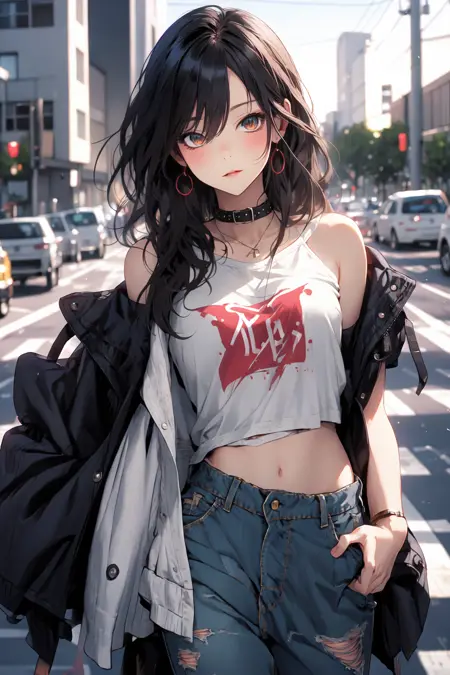 使用这个Lora可以生成很帅气的街拍效果。如果不使用其他人物Lora,模型会生成比较成熟的感觉;通过分层使用,也可以让其他角色呈现这种风格。我用这个Lora创作了很多《碧蓝航线》风格的角色,我个人很喜欢。具体的tag请参考我的示例图。