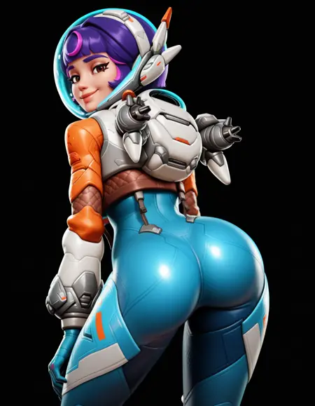 space helmet, cropped jacket, jetpack, bodysuit, blue bodysuit, sneakers