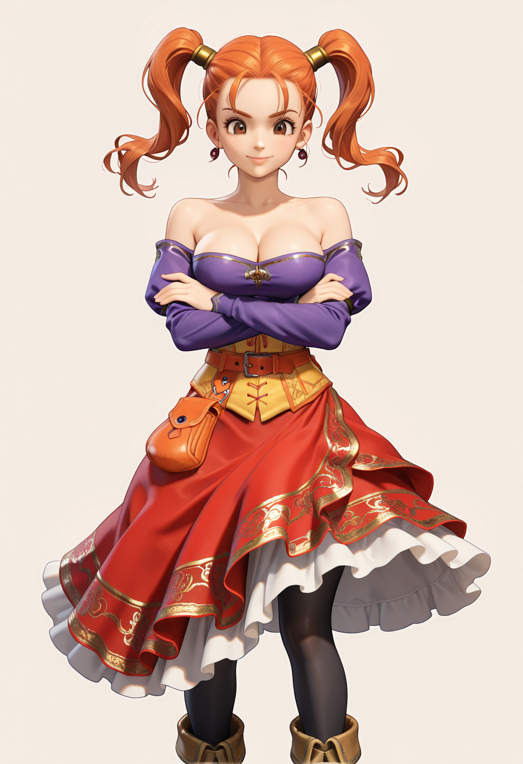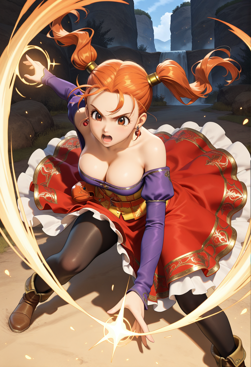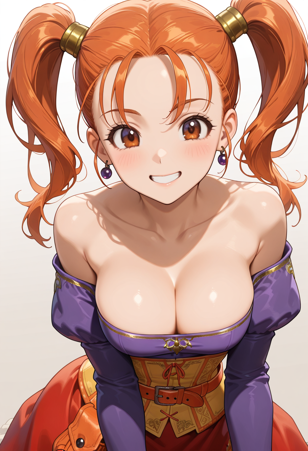 dqh2_jessica, orange hair, twintails, brown eyes, breasts,