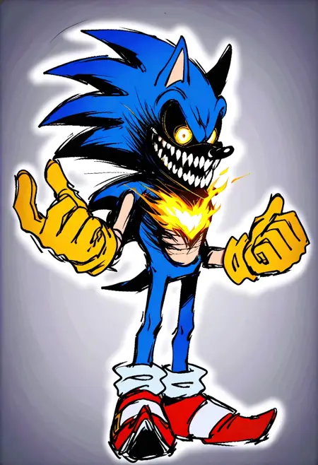 | トレーニングワード | MrXEXE, 1boy, sonic the hedgehog, devious looking hedgehog, near burnt-looking face, yellow eyes, black sclera, hollow face, yellowed human teeth, perked demonic ears, distinct flame shaped like a ribbon, yellow gloves, red shoes, horror,コピーしました! |