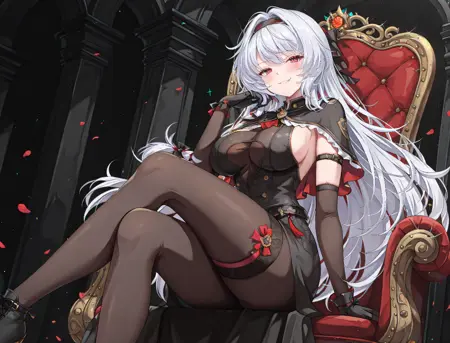 가디언 테일즈의 프리실라. 그녀의 머리카락 색상이 가끔 완전히 어긋나므로, 페이스트에 "은색 머리" 또는 "흰색 머리"를 추가하여 보정하세요. 2벌의 옷