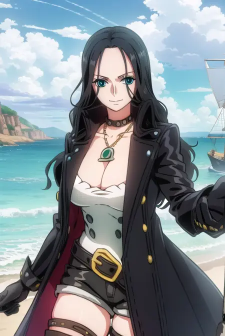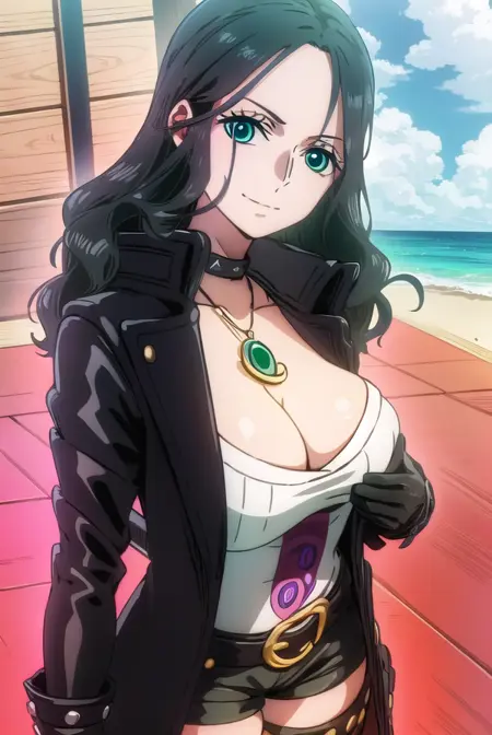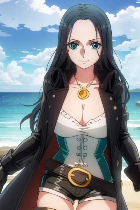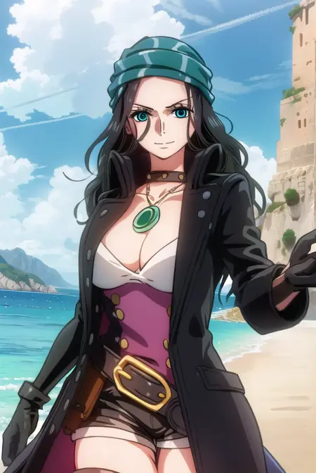 nico robin, 黒髪, 青い目, 後ろに流した髪, 長い髪,