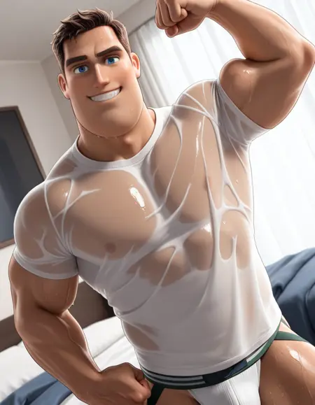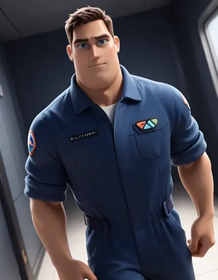 BuzzLightyearIL, 1boy, male focus, muscular, blue eyes, brown hair, short hair
