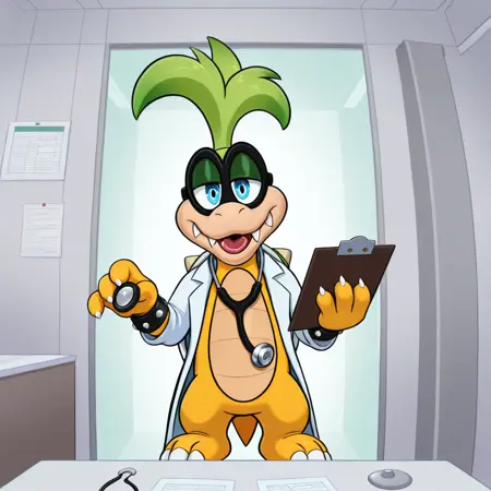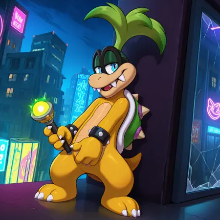 推奨タグ: 緑の髪、メガネ、青い目、牙、爪、黄色い体、薄緑色のトゲトゲした甲羅、トゲトゲのブレスレット、1boy、