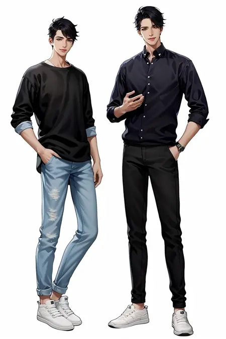 这是一个现代人物立绘LoRA模型,可生成颜值高、身材修长的帅哥和美女