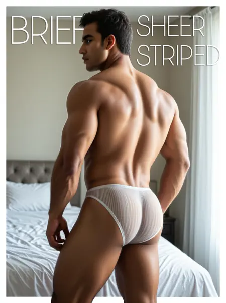 Sheer Striped Briefs with Bonus undressing poses. I was in a bit of a rush, so one is zipped.