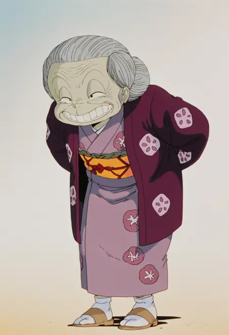 五代由加里,灰色头发,老年女性,发髻,驼背