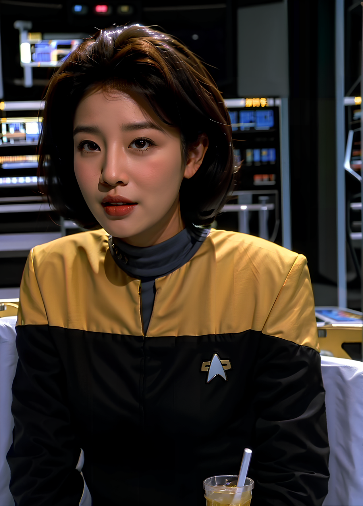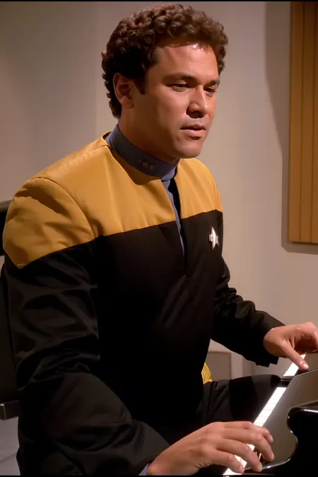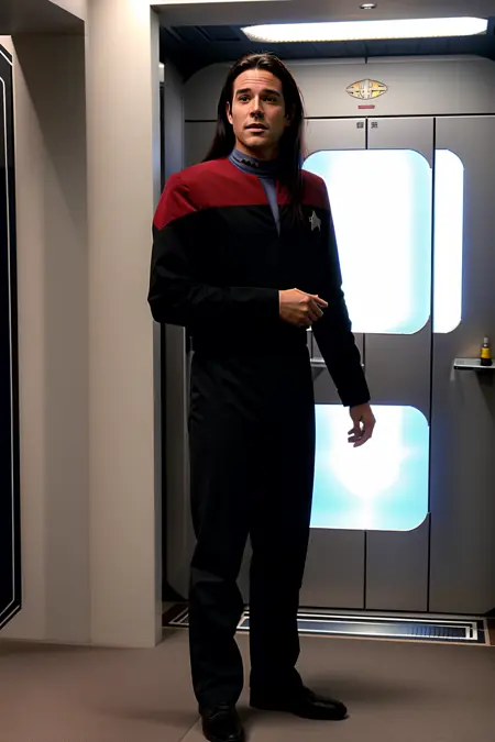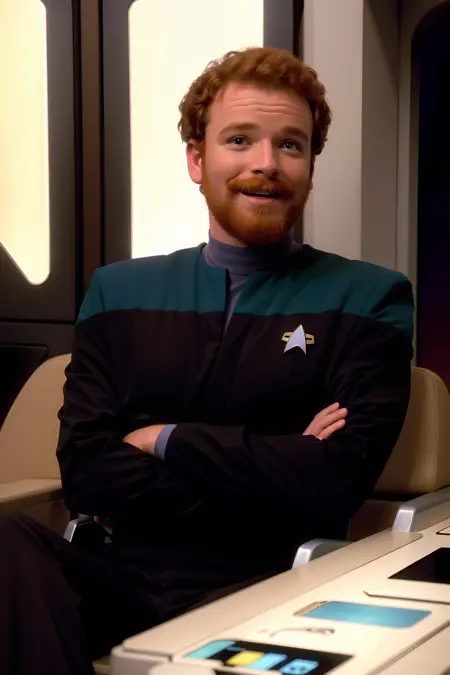 -The trigger phrases that are most consistent for this version are "voyunf teal and black uniform", "voyunf red and black uniform" and "voyunf gold and black uniform". If there is a problem with other color words in the prompt you can reinforce by adding "science","command" or "operations" as those words were also trained, and while they are not good enough to use on their own they helped me to reinforce some of the images, i included one of those cases in the showcase (girl with green hair).