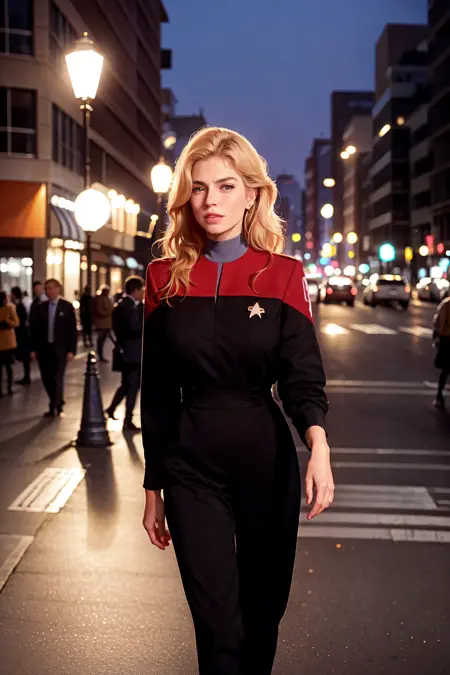 -The trigger phrases that are most consistent for this version are "voyunf teal and black uniform", "voyunf red and black uniform" and "voyunf gold and black uniform". If there is a problem with other color words in the prompt you can reinforce by adding "science","command" or "operations" as those words were also trained, and while they are not good enough to use on their own they helped me to reinforce some of the images, i included one of those cases in the showcase (girl with green hair).