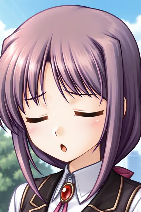 blush,:o,chestnut mouth,closed eyes,disappointed,facing viewer,open mouth,parted lips,raised eyebrows,