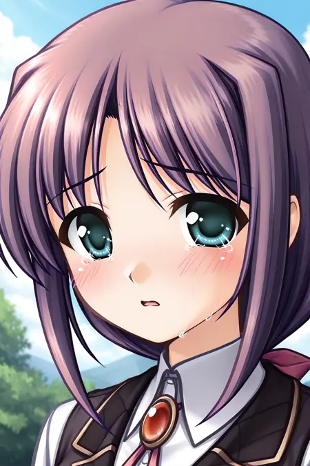 얼굴 붉음, :o, 울음, 눈을 뜬 채 울음, 시청자 바라봄, 입 벌림, 입술 벌어짐, 올라간 눈썹, 슬픔, 눈물 흘림, 눈물,