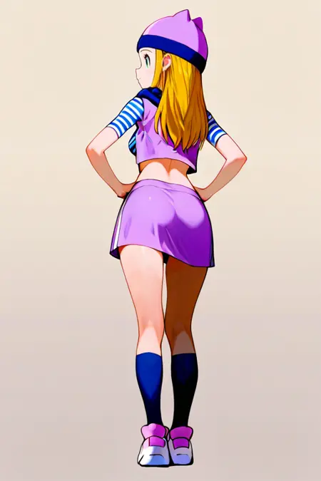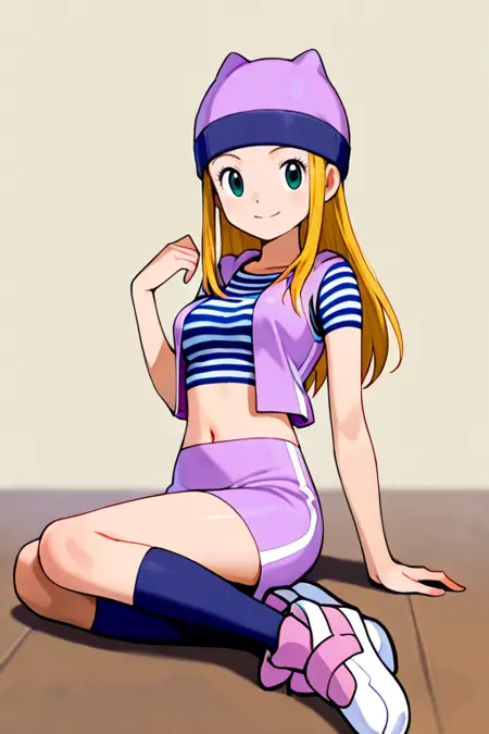中等胸部,Izumidef,短袖,紫色背心,条纹衬衫,短上衣,肚脐,紫色裙子,过膝袜,袜子,鞋子,