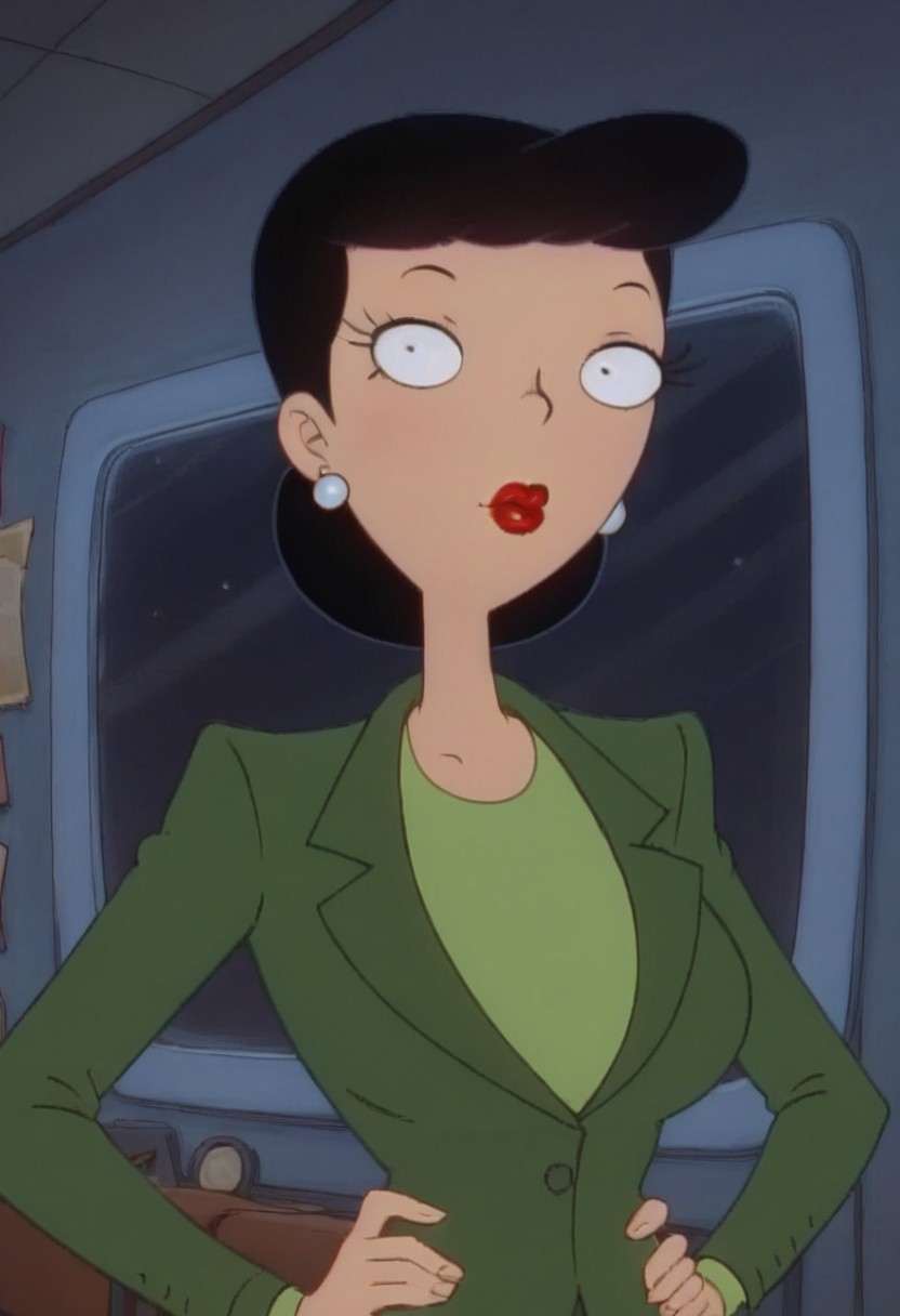 Outfit: dark green blazer with shoulder pads, dark green pencil skirt, light green shirt underneath, white heels