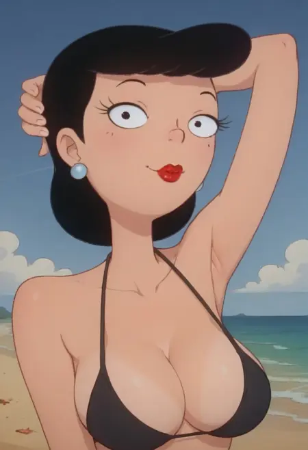 1girl, solo, Hillary_HA, light skin, black eyes, black hair, short voluminous hair, red lips, round white earrings
