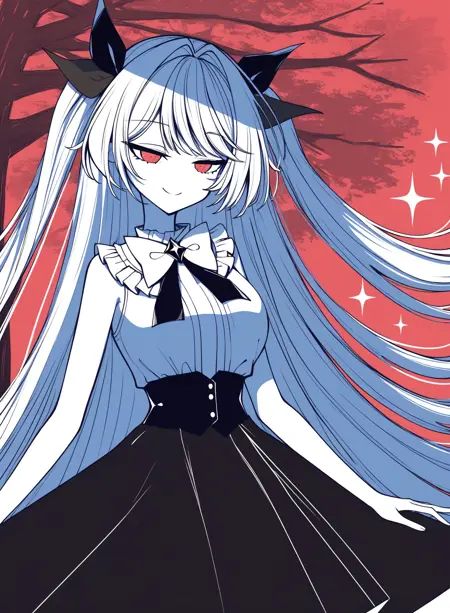 For a more similar style like in the game, use these: monochrome, spot color, outlines