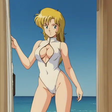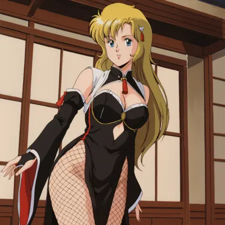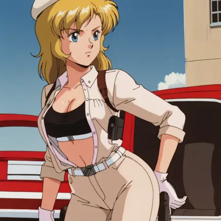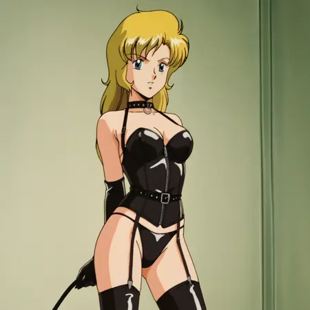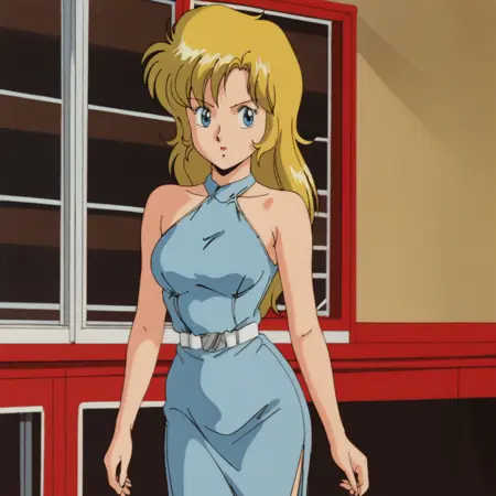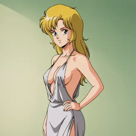触发词:RallyVincent, retro artstyle, 1980s (style), 1girl, blonde hair, pencil skirt, 1990s (style), necktie, blue eyes, formal, long hair, jacket, suit, belt, cowboy shot