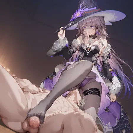 theherta,1girl,witch hat,collar,key necklace,detached sleeves,theherta dress,theherta pantyhose,boots