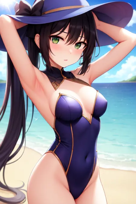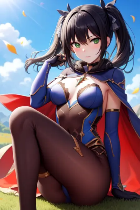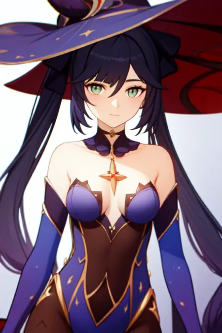 To prompt the full character, enter "lora:Monav3:strengthMona, witch hat, bodystocking, choker, hair ribbon, capelet, hair ornament, earring, detached sleeves, high heels," Feel free to mix and match clothing pieces, and more.