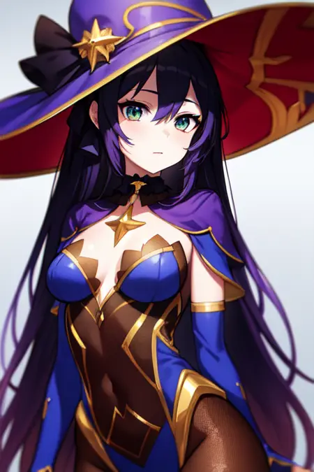 This is a LORA of the character Mona Megistus from Hoyoverse's Genshin Impact.