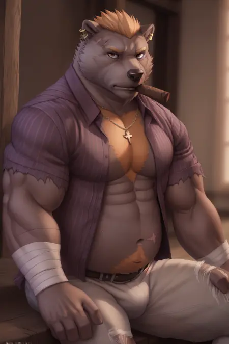 強化プロンプト: "筋肉質な男性、bara、赤い目"