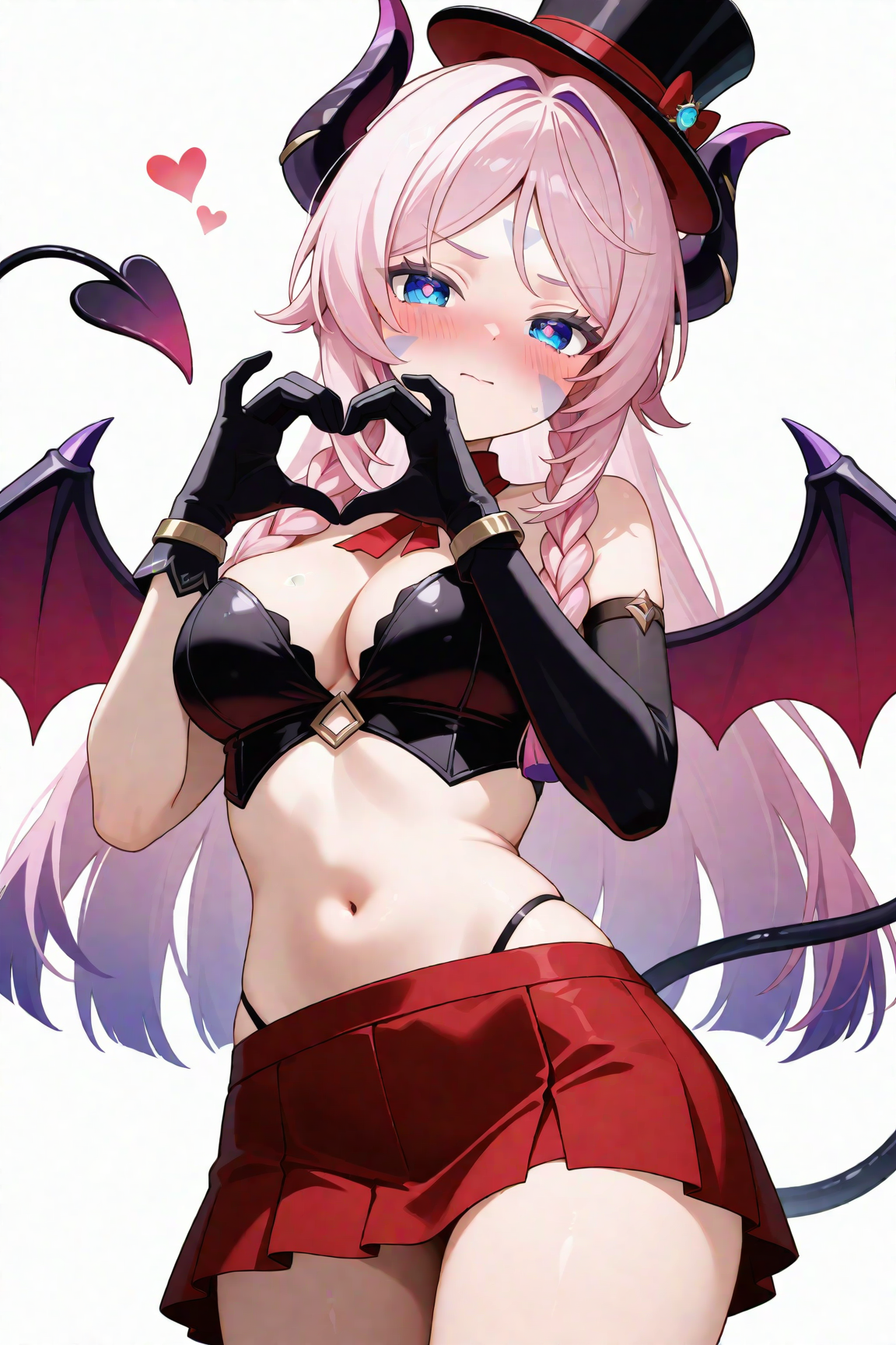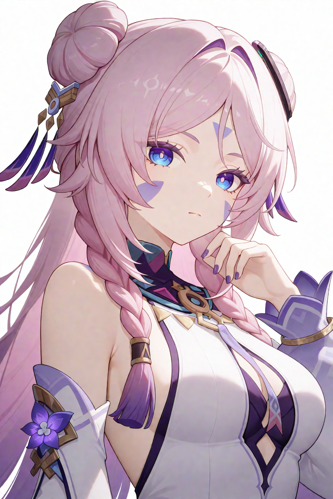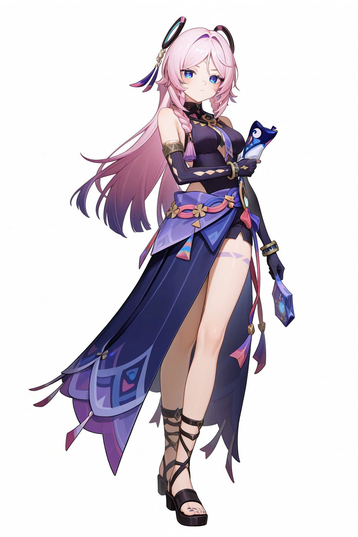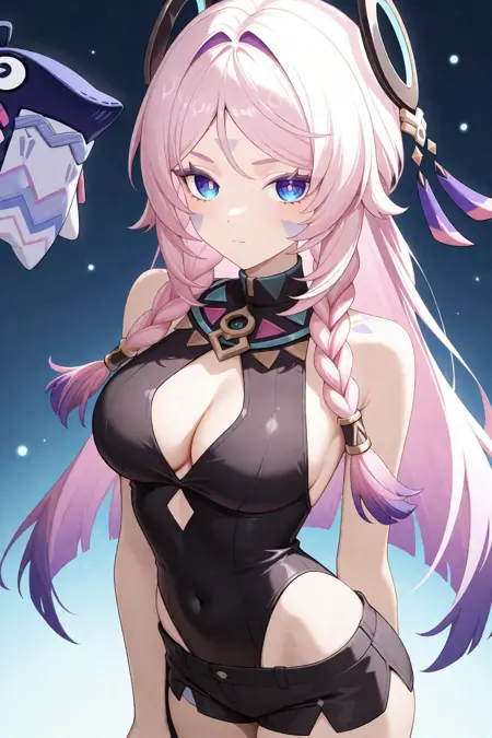 citlali \(原神\),1个女孩,粉发,乳房,长发,单独一人,辫子,紧身衣,黑色紧身衣,露肩,手套,珠宝,刘海分缝,